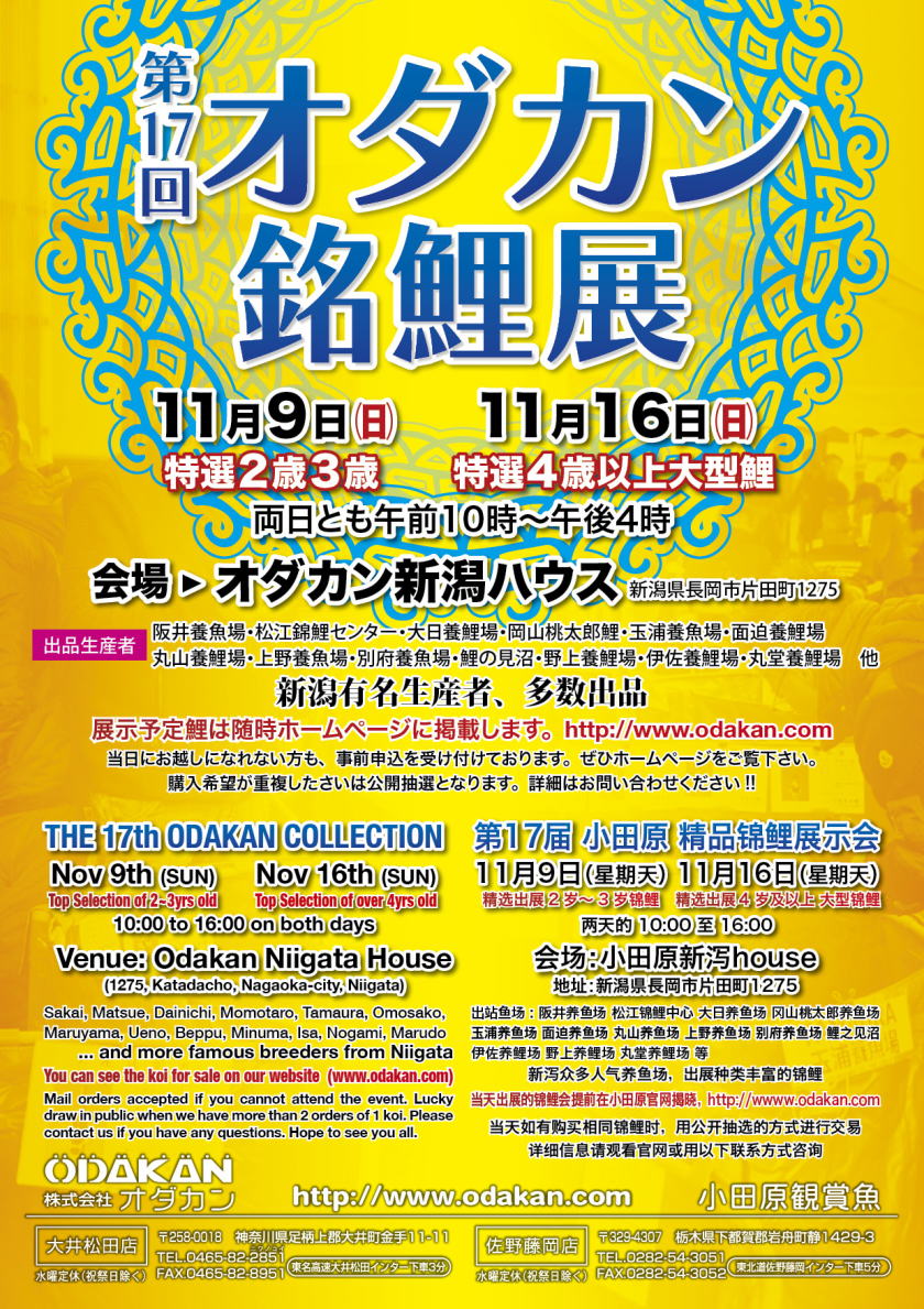 Odakan Cup Entry Koi Sale December 20th: Sano Store December 21st: Odakan